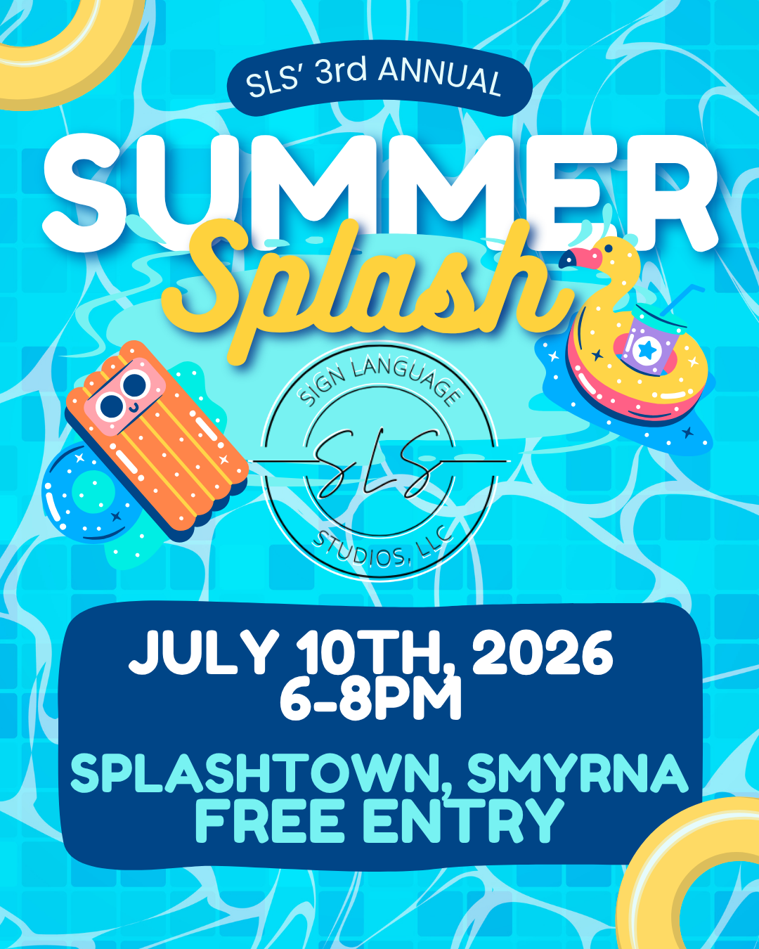 Summer Splash with SLS is back on Friday, July 10, from 6:00 to 8:00 PM at Splashtown in Smyrna!